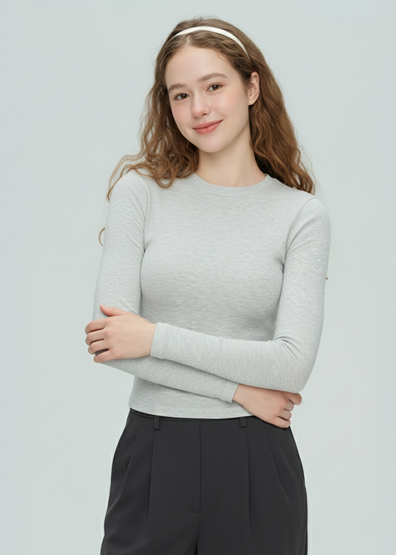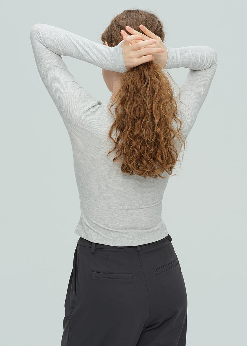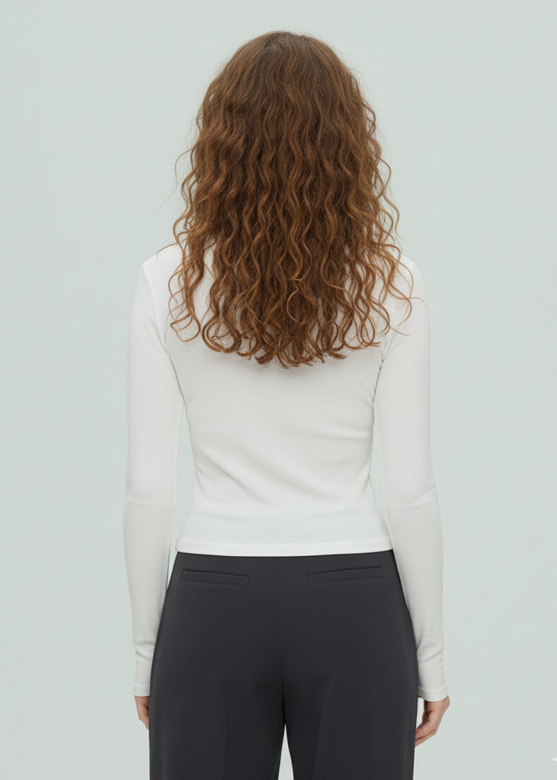 Ce haut à manches longues séduit par sa légèreté et sa coupe ajustée qui sublime naturellement la silhouette. Son tissu modal ultra-doux offre une sensation de seconde peau, parfaite pour celles qui aiment allier confort et élégance discrète.